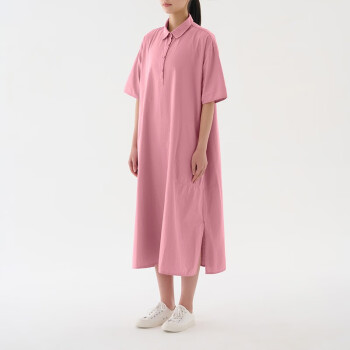 无印良品(MUJI)女式 棉平织 套头短袖连衣裙 GAC67C3S 长裙裙子 浅粉色 均码