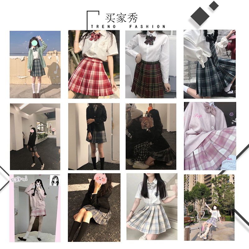 萝美酱jk制服套装全套夏装短裙学院风JK裙春秋百褶裙女装夏天裙子半身裙 柠檬格裙+短袖衬衫+领结 S