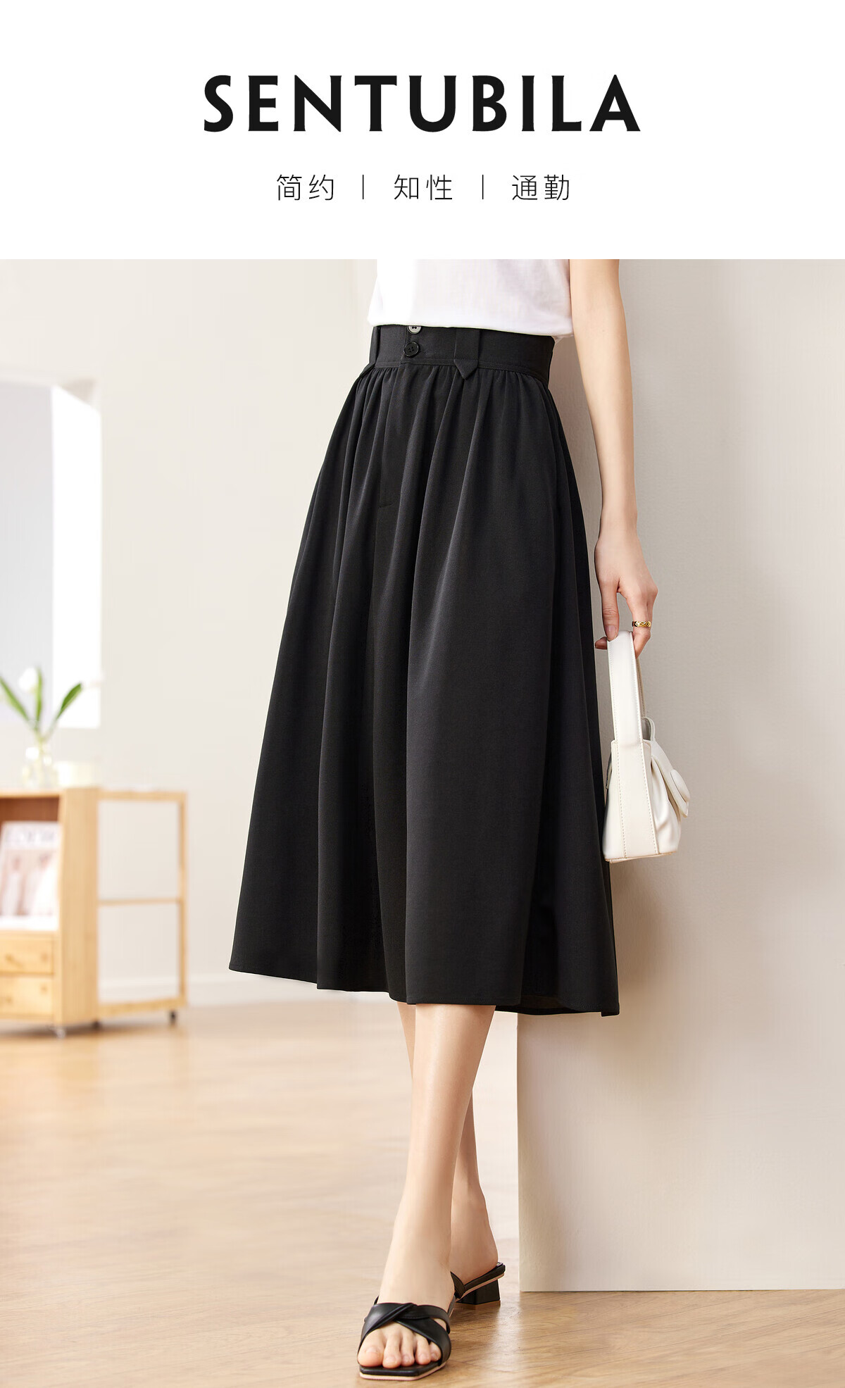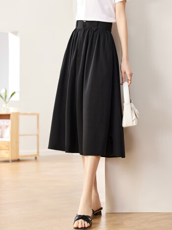 尚都比拉2023夏季半身裙中长款复古遮肉显瘦a字伞裙职业通勤裙子 黑色 L