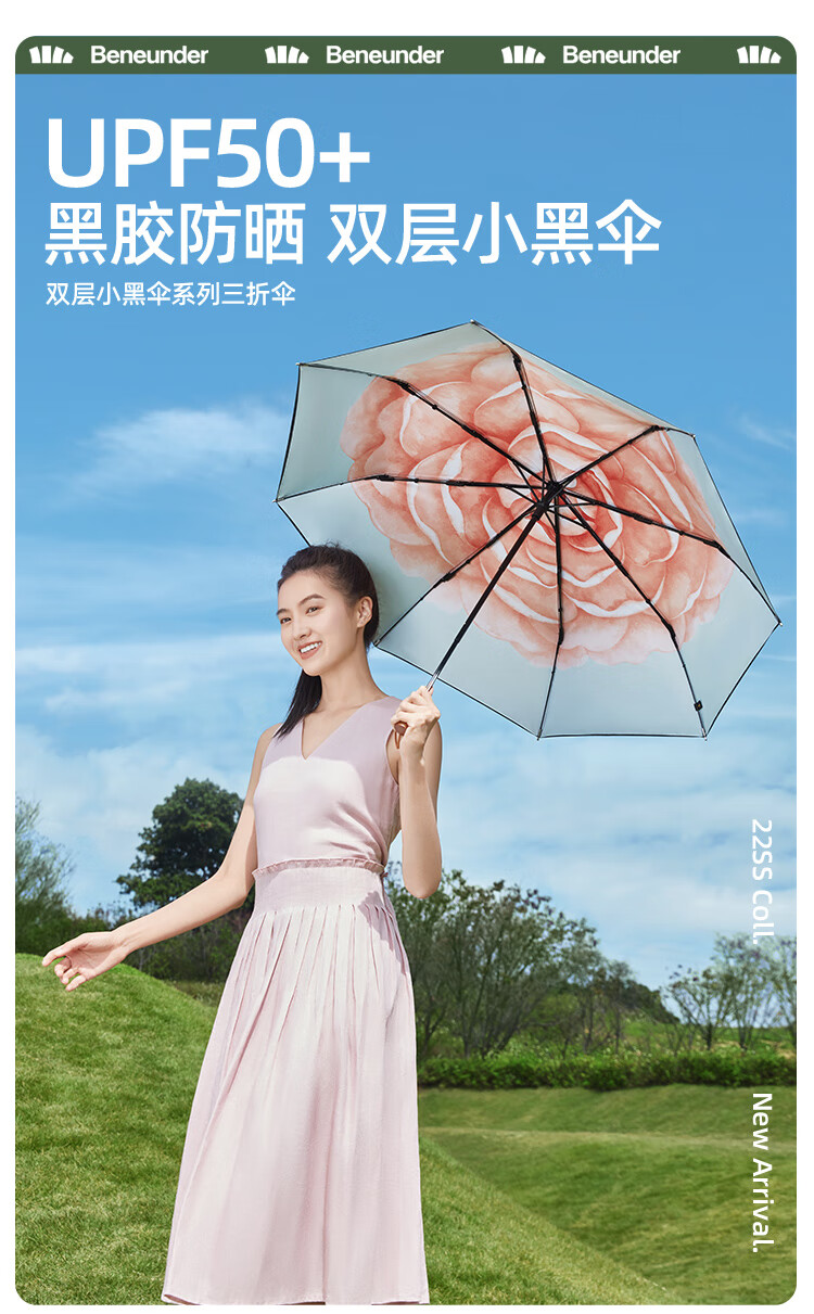 蕉下双层三折小黑伞遮阳伞防紫外线女折叠便携晴雨太阳伞绯月山茶