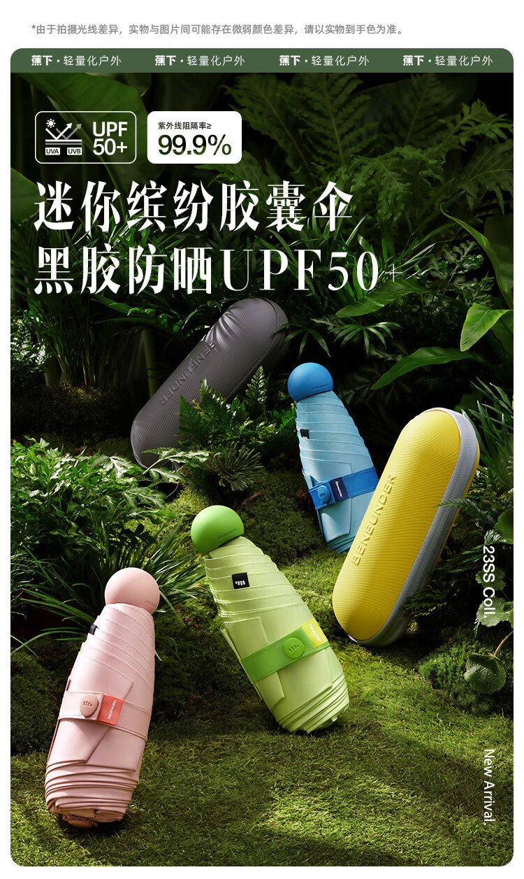 蕉下(beneunder)【周杰伦推荐】太阳伞胶囊五折防晒紫外线遮阳女便携6骨 奶盐灰