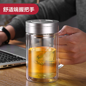 富光 健牌双层玻璃杯支持团购定制茶杯办公杯带把 大容量男女水杯子