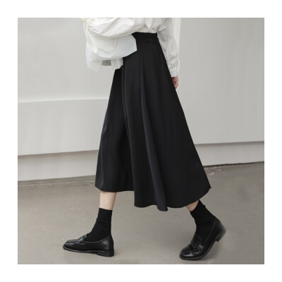 初申黑色西装裙半身裙女高腰中长款A字百褶...
