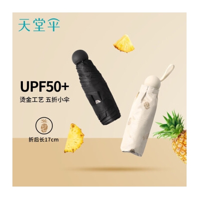 天堂 遮阳伞防紫外线五折太阳伞印花黑胶防...