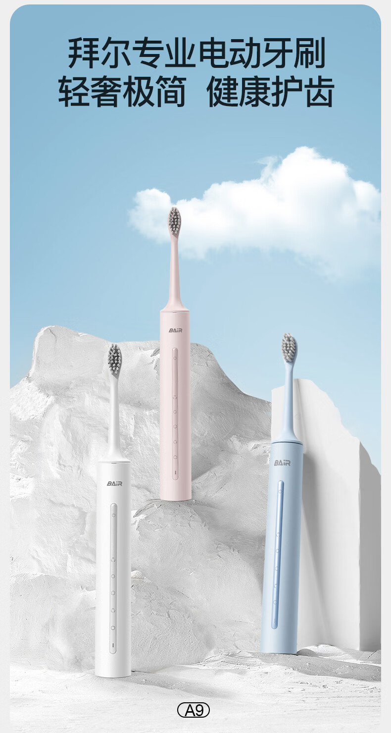 拜尔A9 电动牙刷成人声波充电式震动软毛情侣款学生党智能自动牙刷男女士 送女朋友 曜黑(豪华版6刷头)